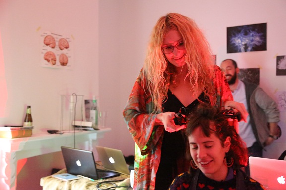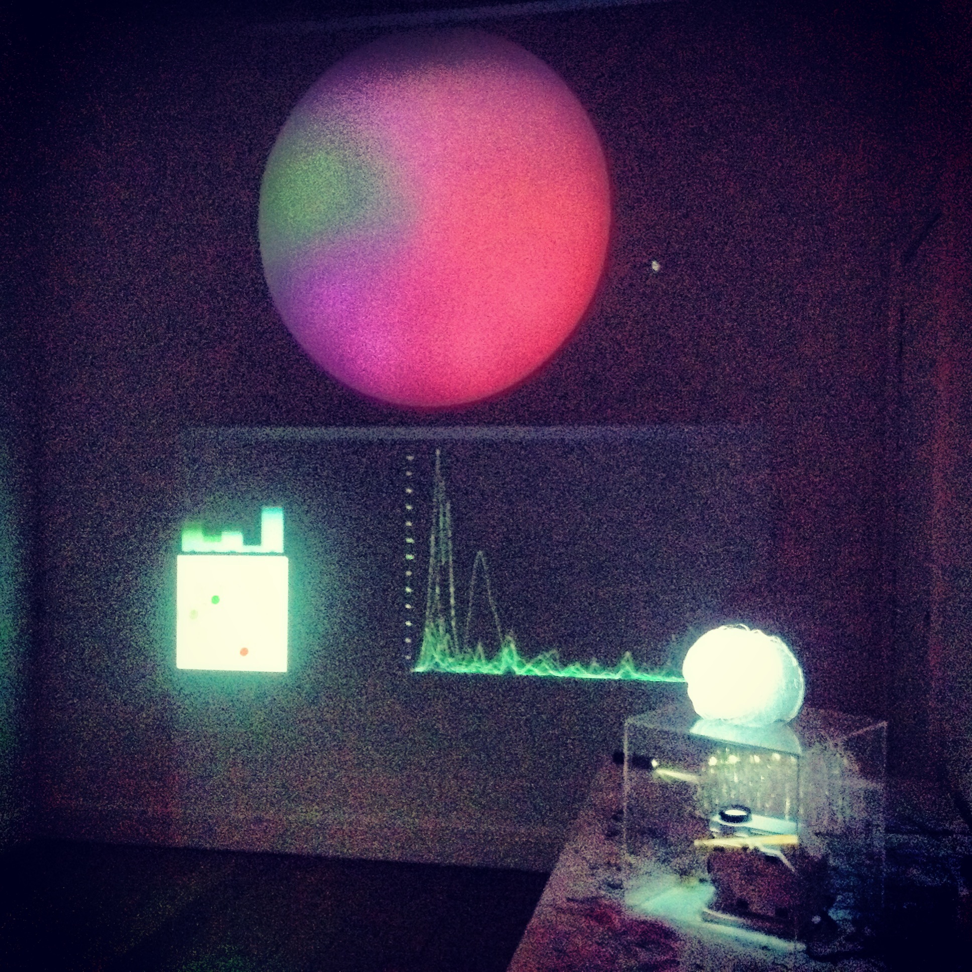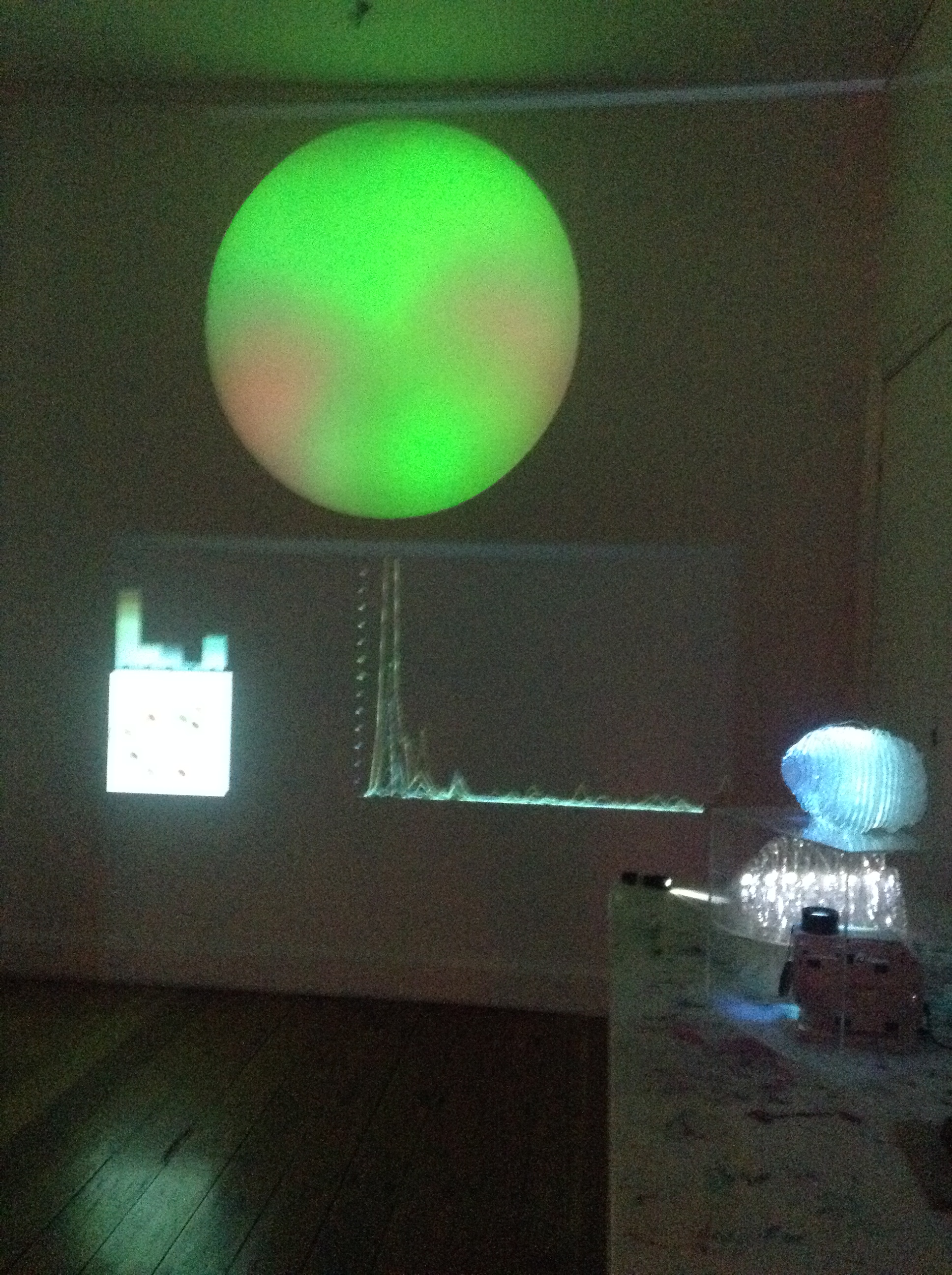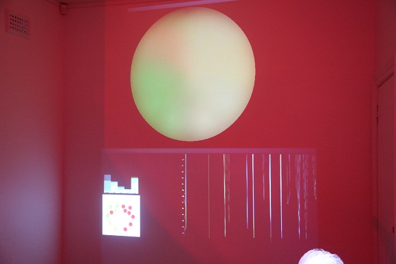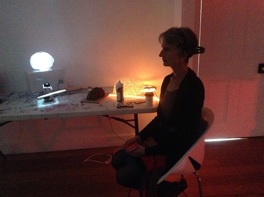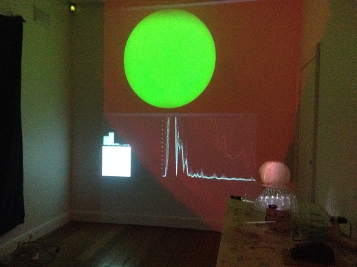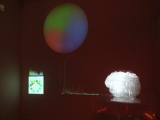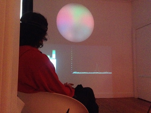 The first stage of the Brain Light research project was creating an interface to provide an interactive art experience where no physical touch was required except the power of thoughts. The interactive installation is controlled with a wireless headset that records the brain’s electrical activity and produces a shifting coloured orb of light driven by brain activity. Collaborating with a neuroscientist, Peter Simpson-Young Research Officer, MDA Australia and software developer and programmer Sam Gentle, the headset has been set to explore three brain frequencies: alpha (Blue, meditation), theta (Green, focus and attention) and beta (Red, excitement/agitation). These are translated into a sun-like orb light display. This technology reveals real-time neural activity, and shows how we can consciously control our brain’s bustling electrical activity and witness an internal feedback loop created by our constantly changing perception of the artwork.
