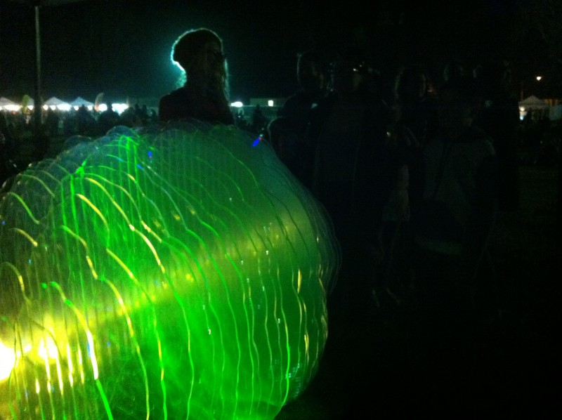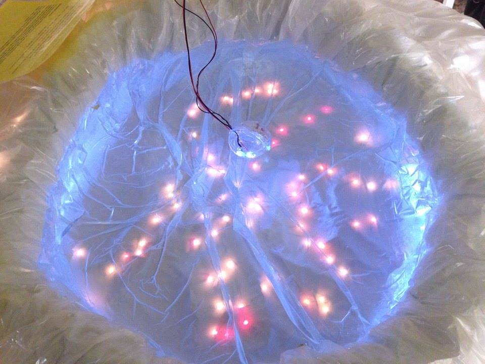 The wearable interactive light costumes I created were based on a Sci-Fi inspired vision of a bioluminescent immortal hermaphrodite transhuman cyborg jelly-fish.