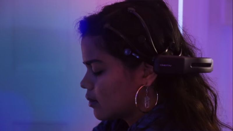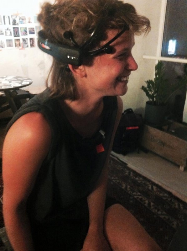 Joel Parker is testing his brain activity, showing half beta half theta.