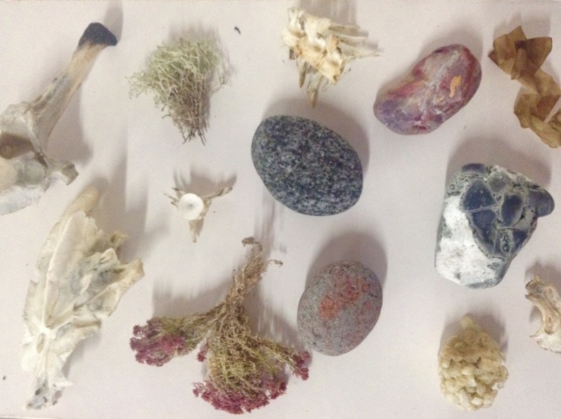 Seals Fur, Fish Bone, Dandelion Flower, Dandelion Stamen, Seaweed, Sea Urchin.