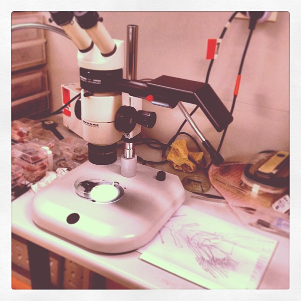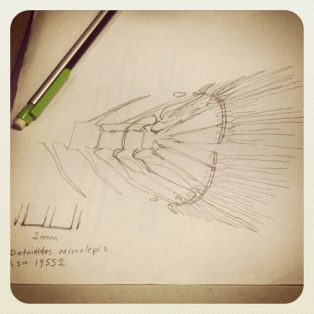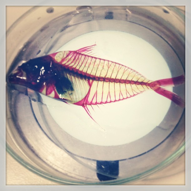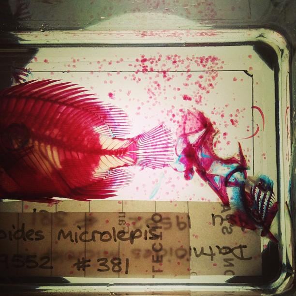 In 2013 I worked as a biological illustrator for an Icthyologist, Dr Anthony Gill at the University of Sydney. I created the images for a taxonomic paper he was working on comparing the gill arches across species of small sea fish. The illustrations were drawn through a periscope microscope, very carefully tracing the tiny bone structures of fish that are made translucent with a special pink dye.