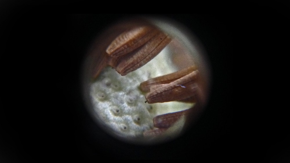 Micro Planet is an ongoing exploration into the micro-macrocosm of the natural world. Looking inwards through the lens you are transported to the microscopic scale of nature. When looking through the microscope one starts to imagine alien worlds and planets. It appears mysterious, strange and cosmic in a similar way to looking outwards through a telescope.
