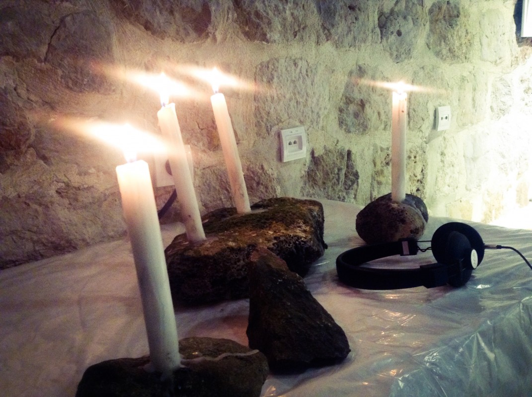 The work uses a projector and headphones to display the audio-visual content collected from island Lokrum. The sound element was created through layering audio tracks recorded from the natural environment, such as water, crickets, and sub aquatic sounds recorded using hydrophones. It also contains a whistling song I composed while exploring the island as well as stories of the curse told by locals, which included rumours that the island was also a getaway for forbidden lovers.