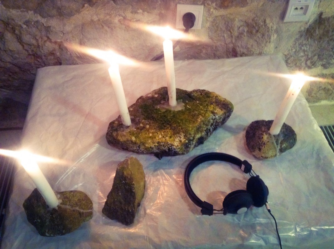A collection of rocks collected from the island with candles that represent the Benedictine Monks who were expelled from inhabiting the island in 1798. According to legend the monks created a curse by walking the the circumference of the island and dripping wax from upside down candles chanting “all who acquire the island for pleasure be cursed”. Conveniently for the Monks, everyone who has tried to own the island has died horribly.